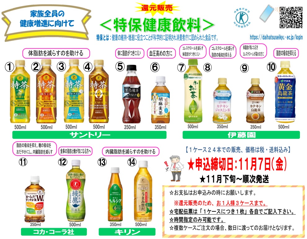 11月の還元斡旋では特保健康飲料がお買い得となっております。