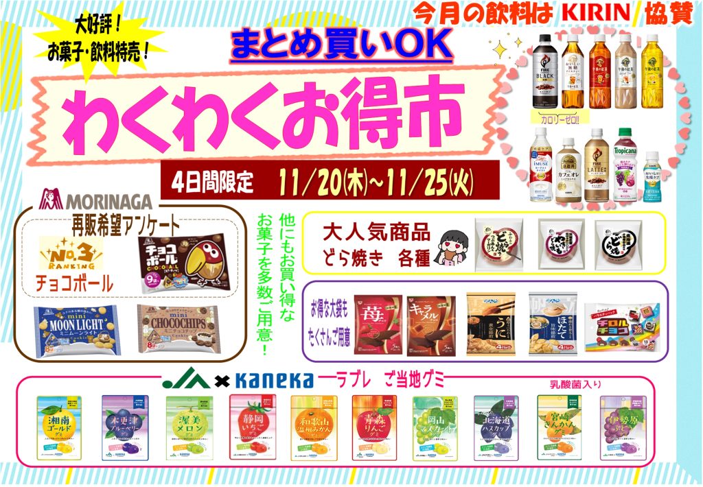 今月は20日(木)から25日(火)の期間、わくわくお得市を開催いたします。