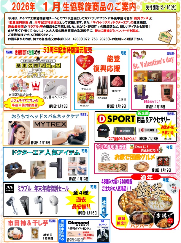 本日より1月度斡旋商品のお申込み受付がスタートいたしました!