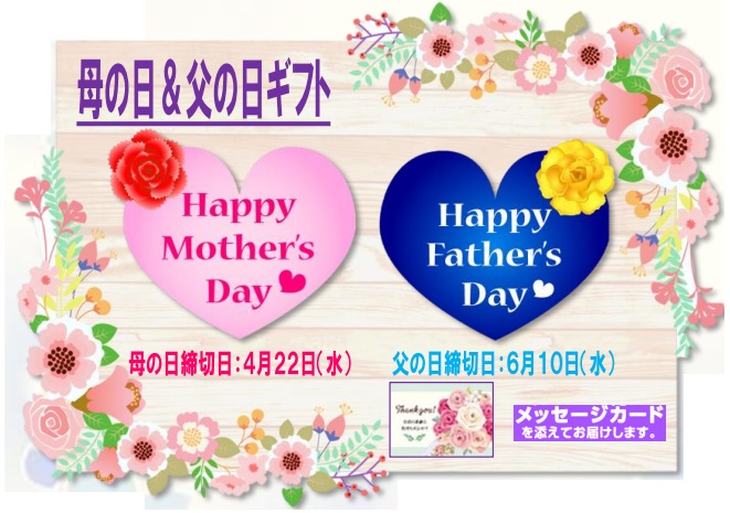 4月の斡旋では母の日&父の日ギフトのお申込みを受付中です。