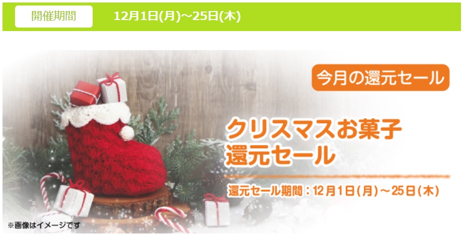 12月1日(月)からはクリスマスお菓子の還元セールを実施いたします!