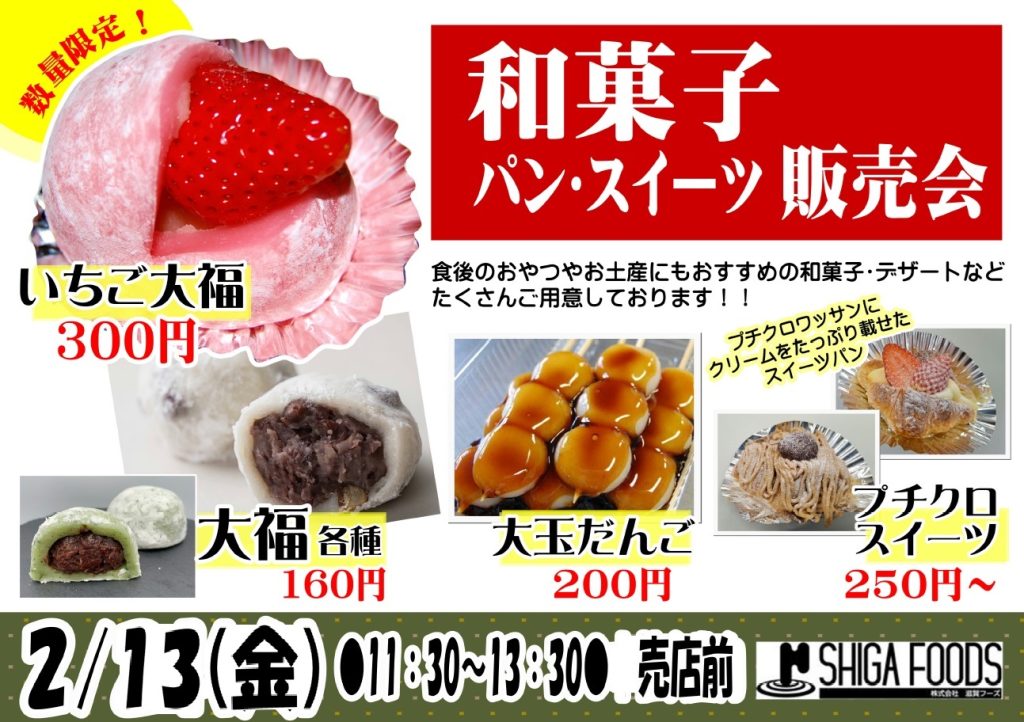 今週13日(金)は滋賀2売店前で滋賀フーズの即売会を実施いたします!