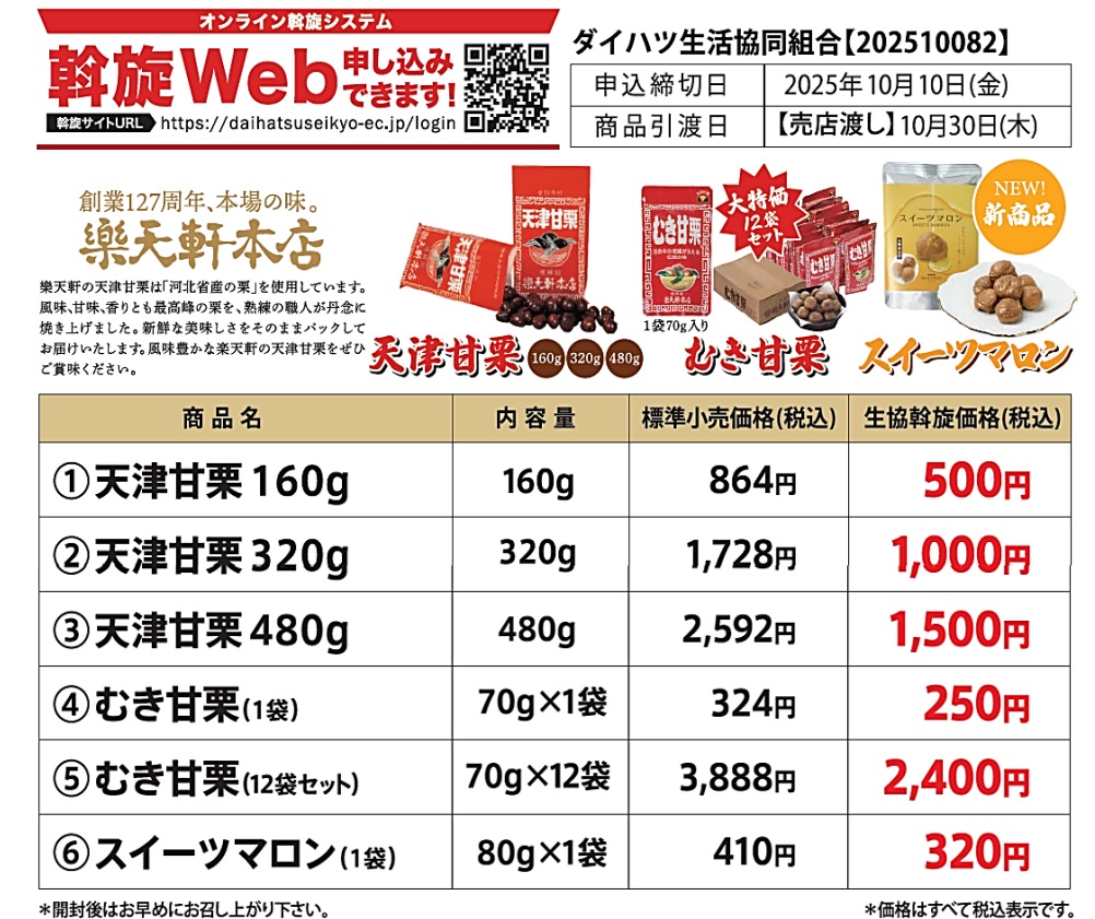 10月の斡旋では天津甘栗のお申込みを受け付けております!